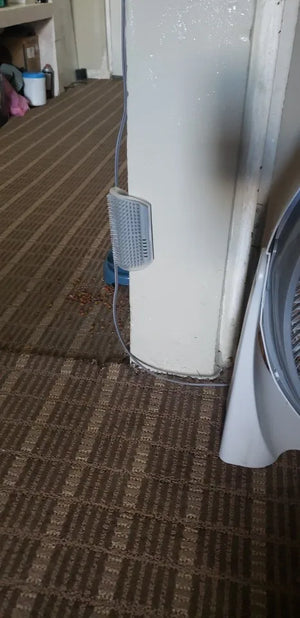 Mount the brush on stable corners to trap loose fur and offer a massage, reducing loose hair, calming cats, and cutting cleaning time significantly.